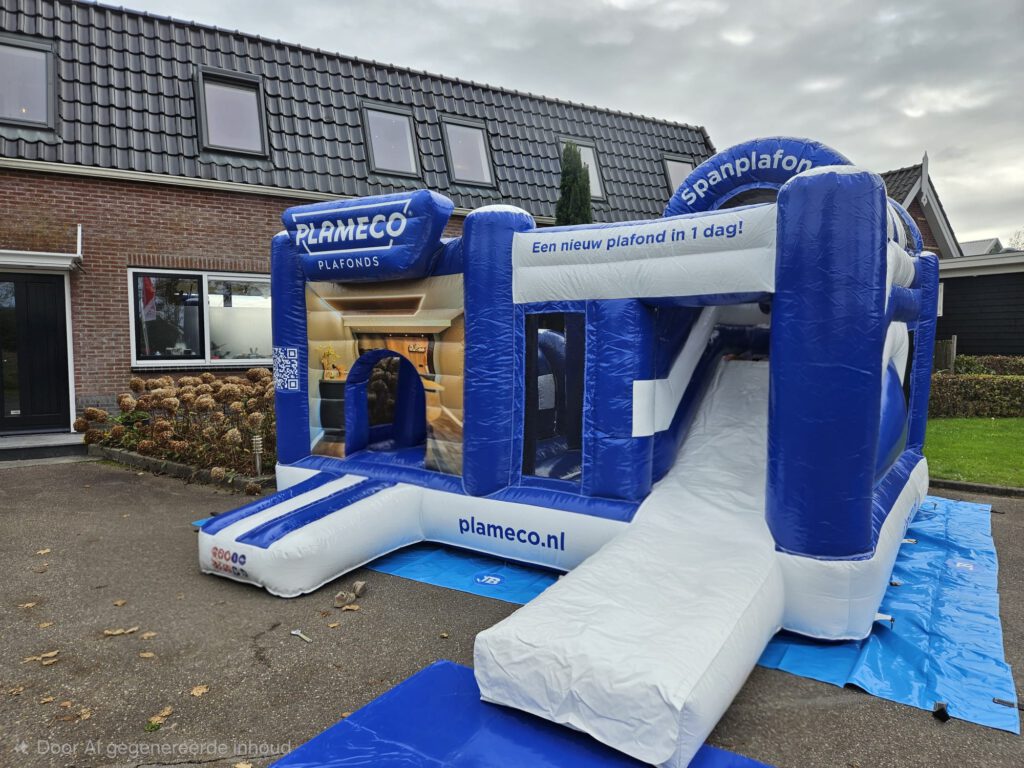 “Yes, hij staat weer klaar! Ons grote Plameco springkussen mag gratis mee naar jouw feestje. Lekker lokaal, makkelijk geregeld en gegarandeerd plezier.”